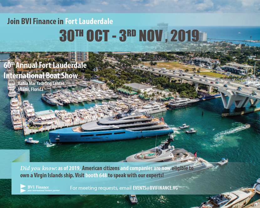 BVI Finance is delighted to be an exhibitor at this year's Fort Lauderdale International Boat Show in Florida, partnering with the Virgin Islands Shipping Registry and the BVI Tourist Board!